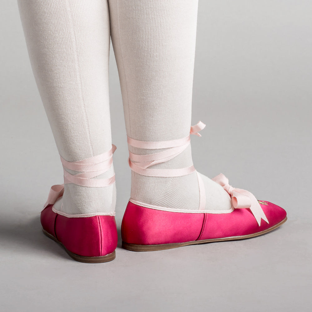 • Petersham binding, ankle ribbons, and bow
